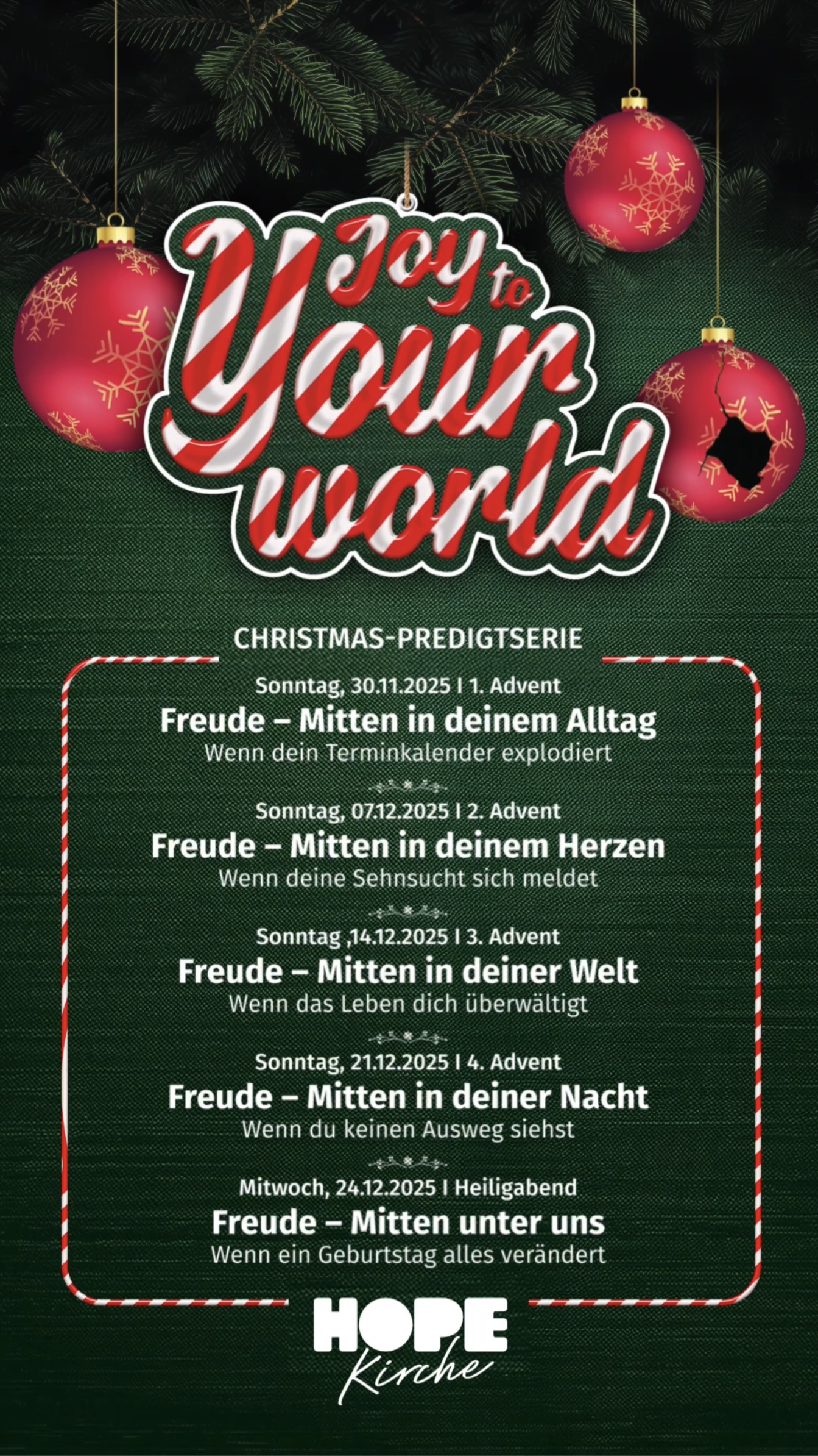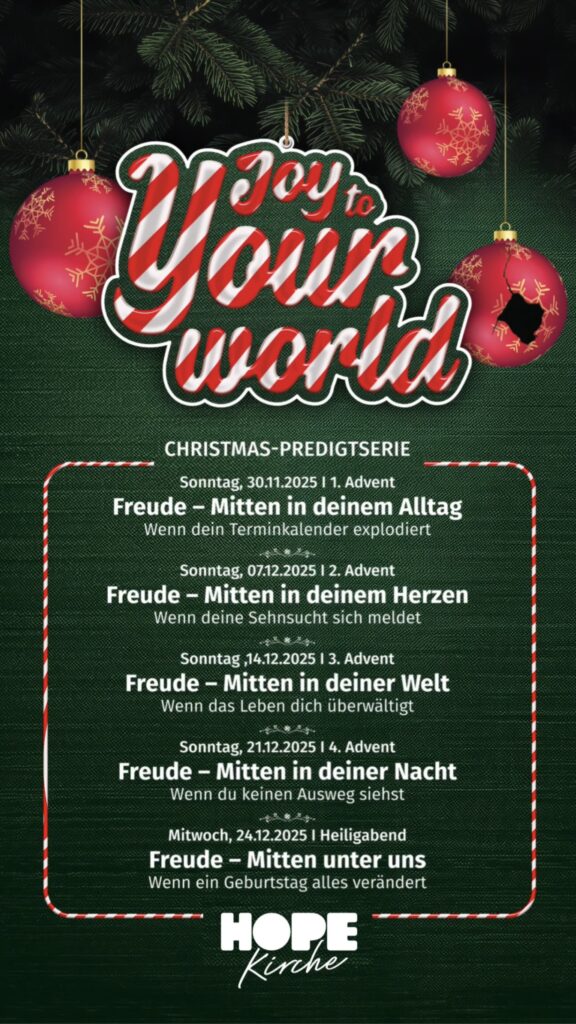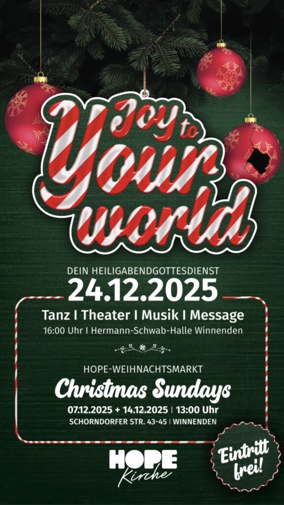 Die HOPE Kirche ist eine moderne Kirche, in der jeder Mensch willkommen ist. Uns gibt es, damit Menschen Hoffnung finden.Wir freuen uns darauf, dich kennenzulernen.